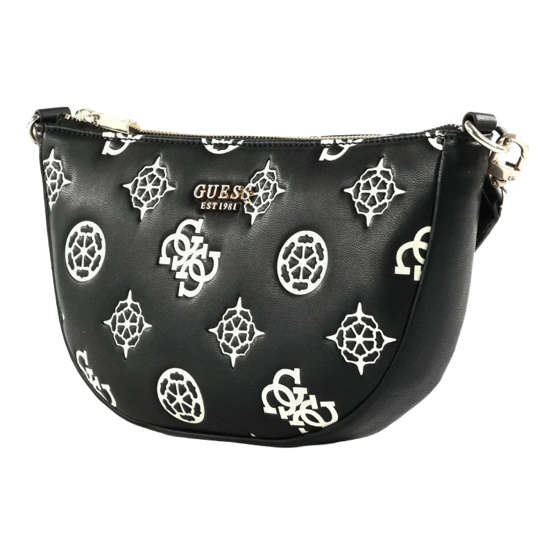 Discover the stylish and functional Guess Deesa Logo Saddle Double Pouch Crossover Bag in Black, perfect for women who desire both elegance and practicality. Crafted from eco-leather, this medium-sized crossbody bag features the iconic 4G logo and offers ample space with an innovative double pouch design.